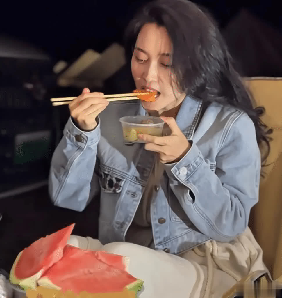 此次露营的地点看上去应该是在森林北的家乡,俗话说得好,“早穿皮袄午穿纱,围着火炉吃西瓜”,森林北面前的火炉旁就摆着西瓜,照片中的森林北丝毫不在意形象,烤好了食物就一大口往嘴里塞,看上去也是饿极了。