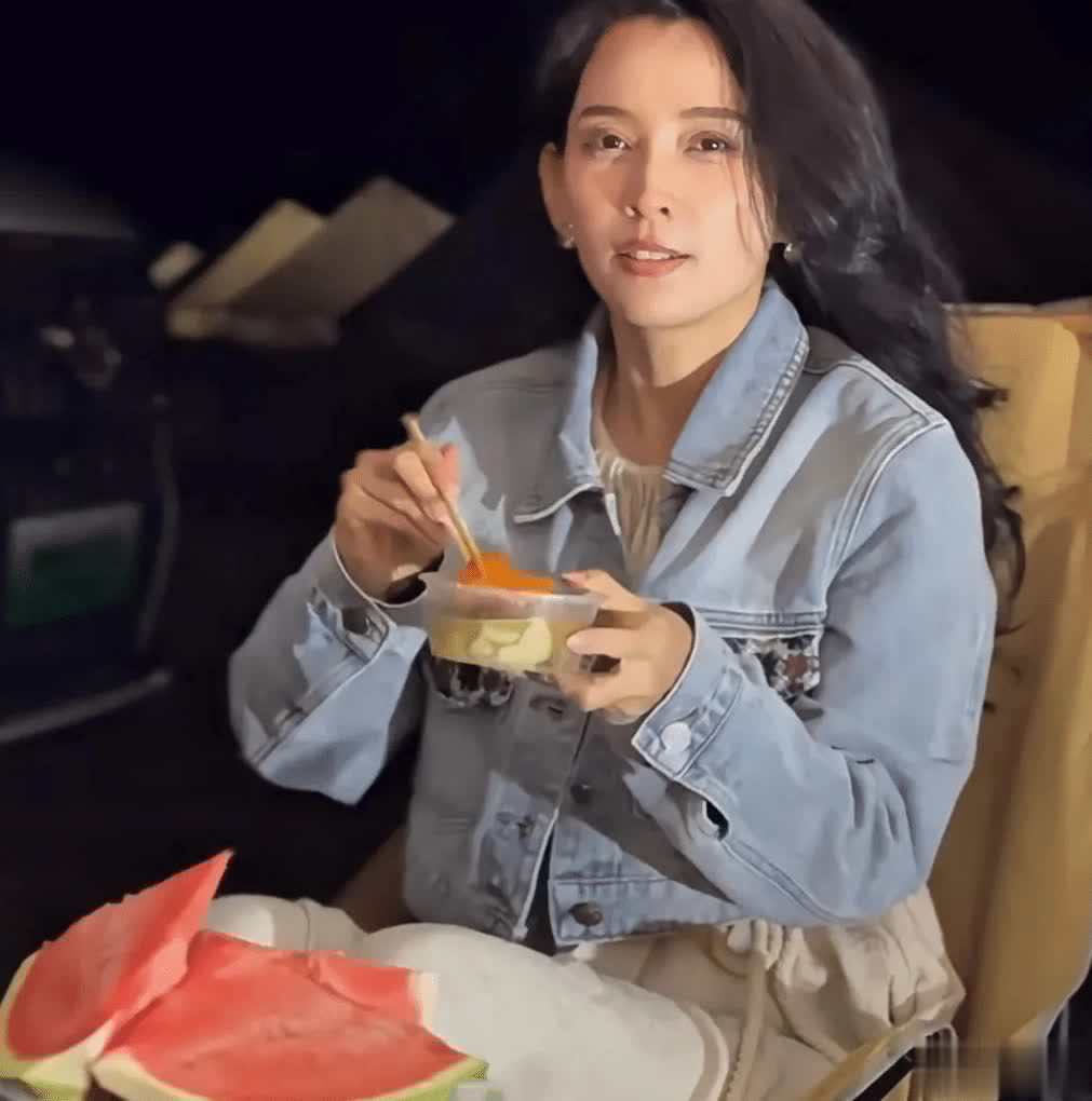 尽管身处野外,但森林北的皮肤状态依旧令人羡慕。镜头拉近,森林北细腻的肤质和均匀的肤色,让人完全看不出衰老和疲惫的痕迹。而且值得一提的是,这姐总是素颜出镜,这次出来露营倒是化了点淡妆,裸感的妆容看上去非常精致,也十分贴合森林北的气质。